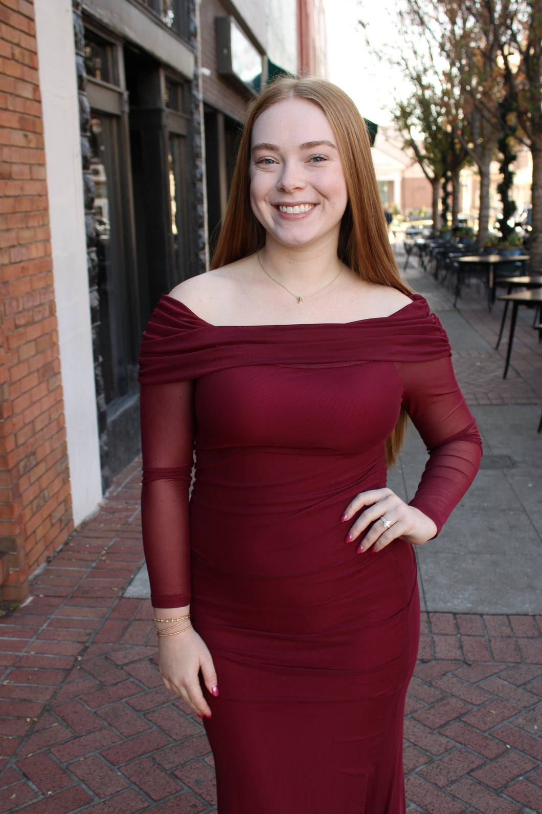 Burgundy Long Sleeve off the Shoulder Maxi Dress