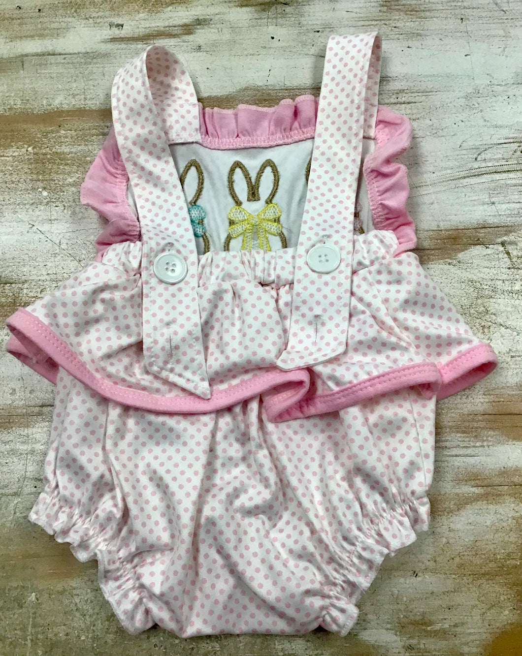Pink and White Polka Dot With Three Embroidered Bunny Bubble
