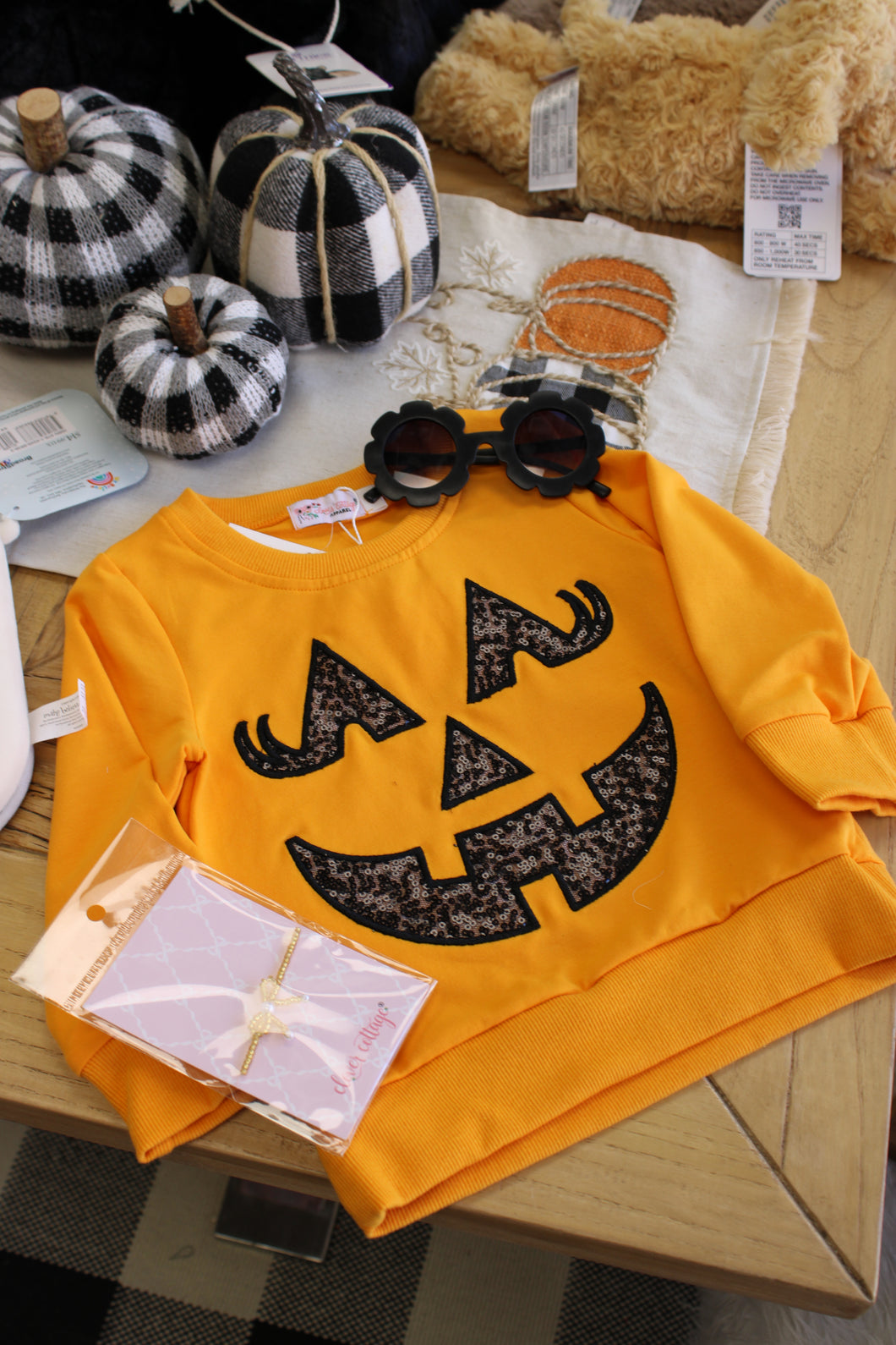 Orange Jack O Lantern Sweat Shirt with Black Sequins
