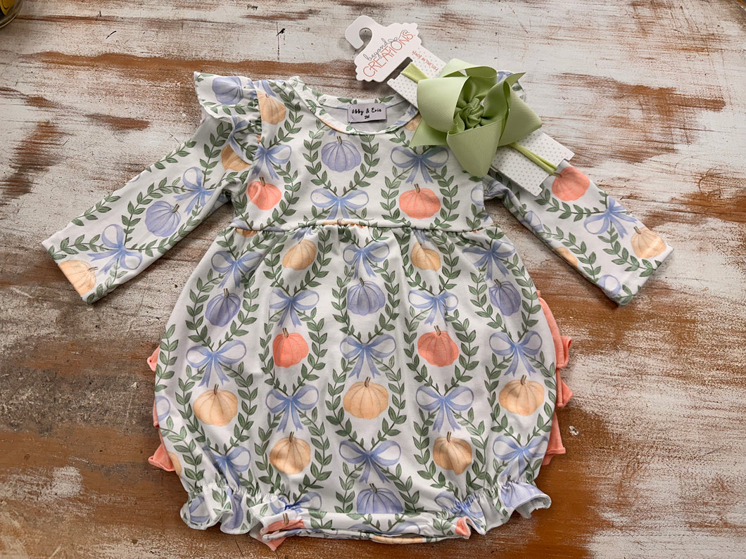 Cream with Blue Bows and Pumpkins Ruffle Bottom Bubble