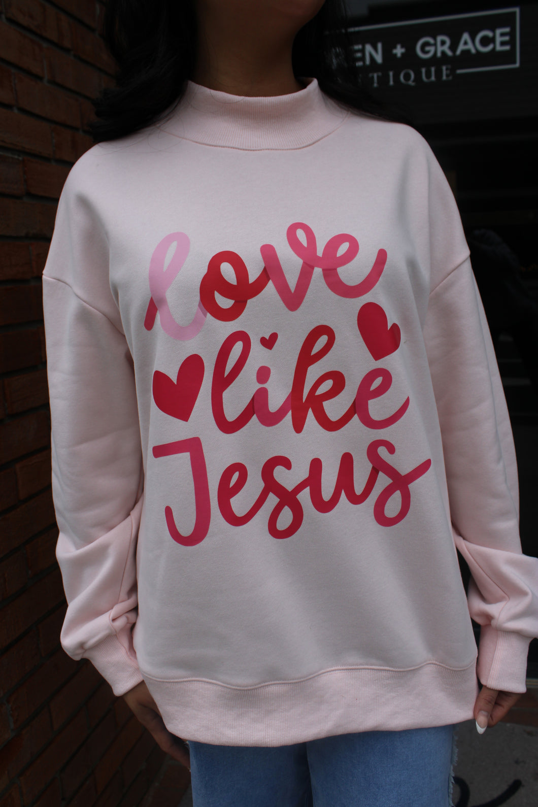 Pink with Love Like Jesus and Hearts Sweat Shirt