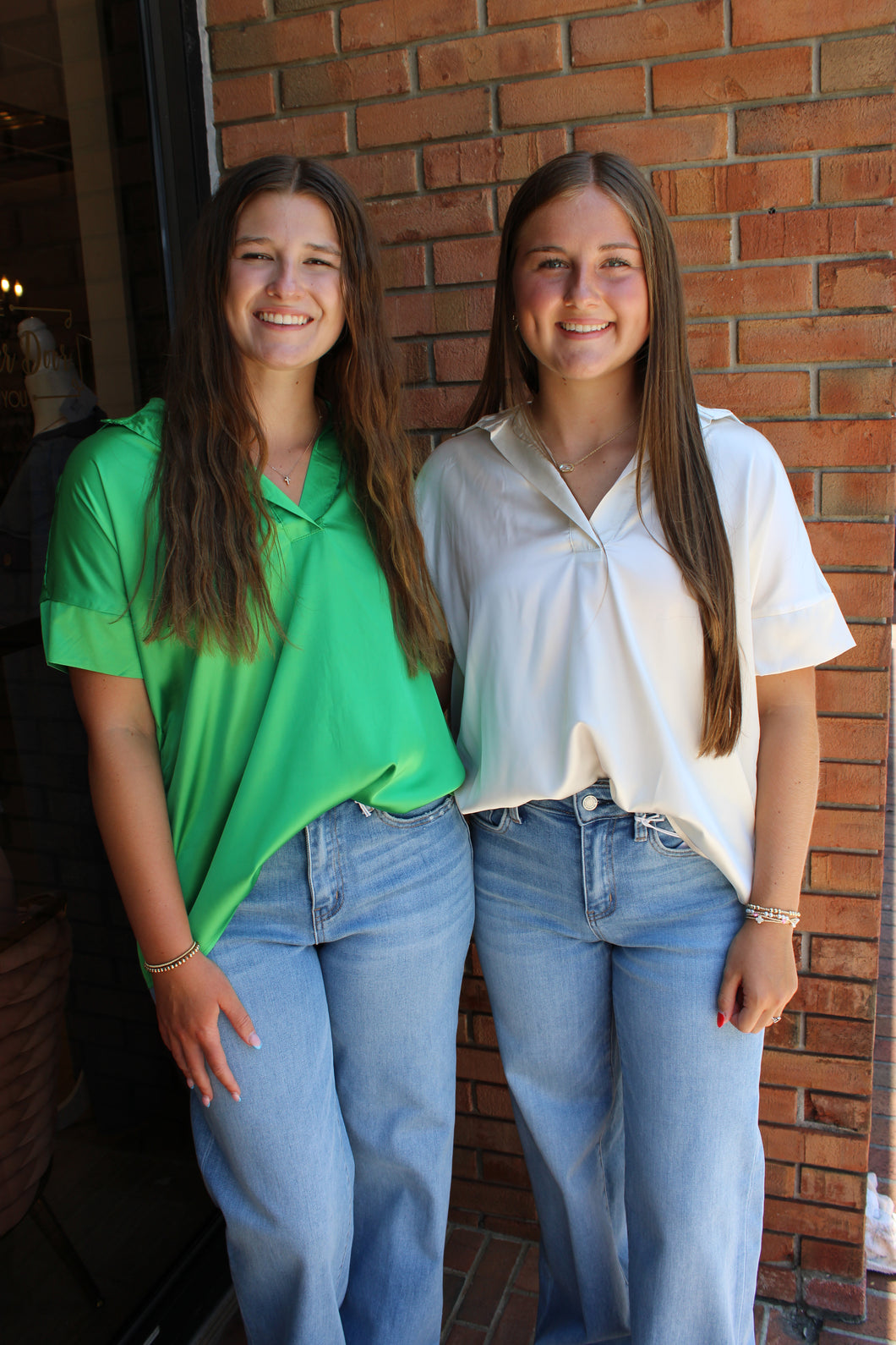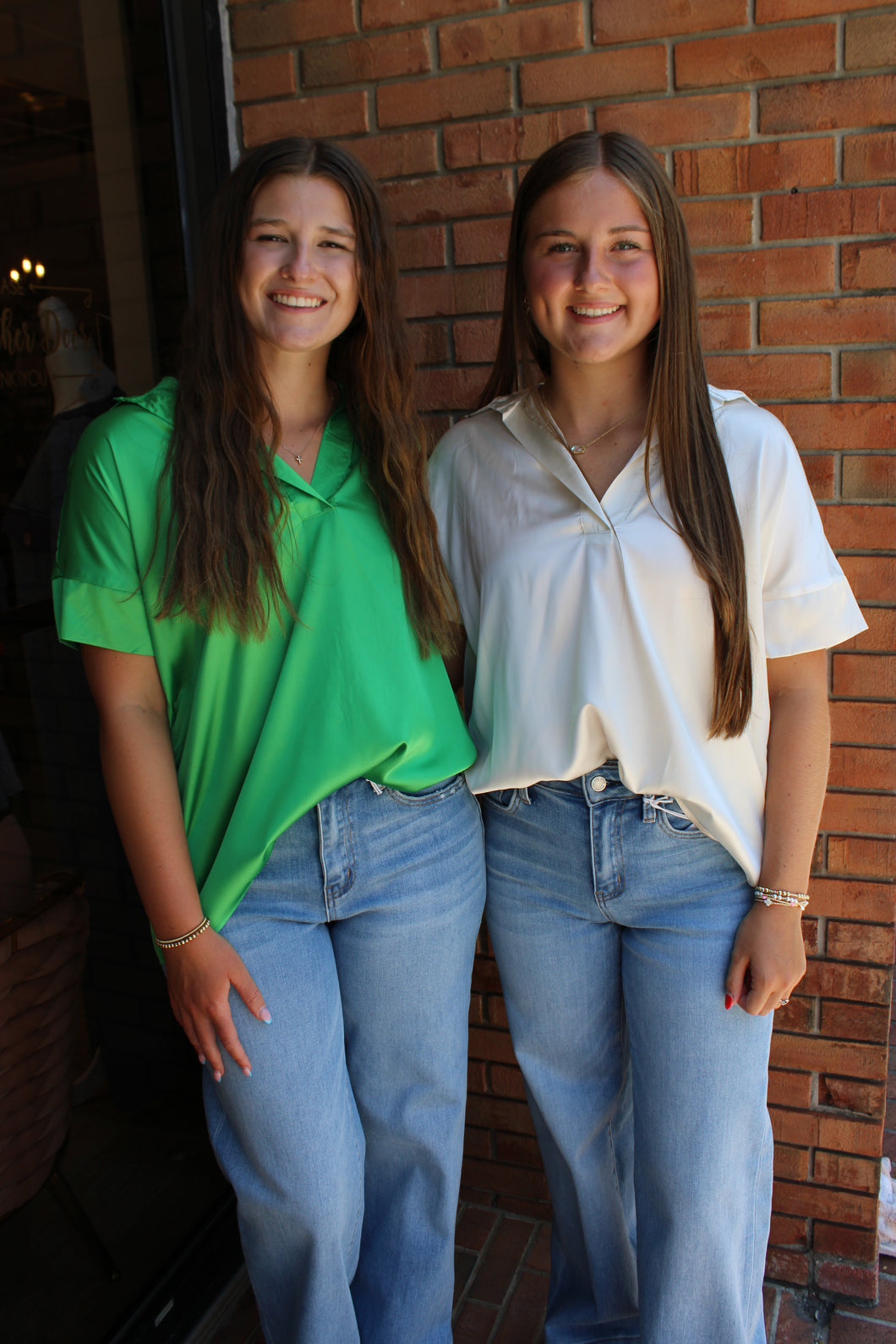 Green and Ivory Satin Blouse