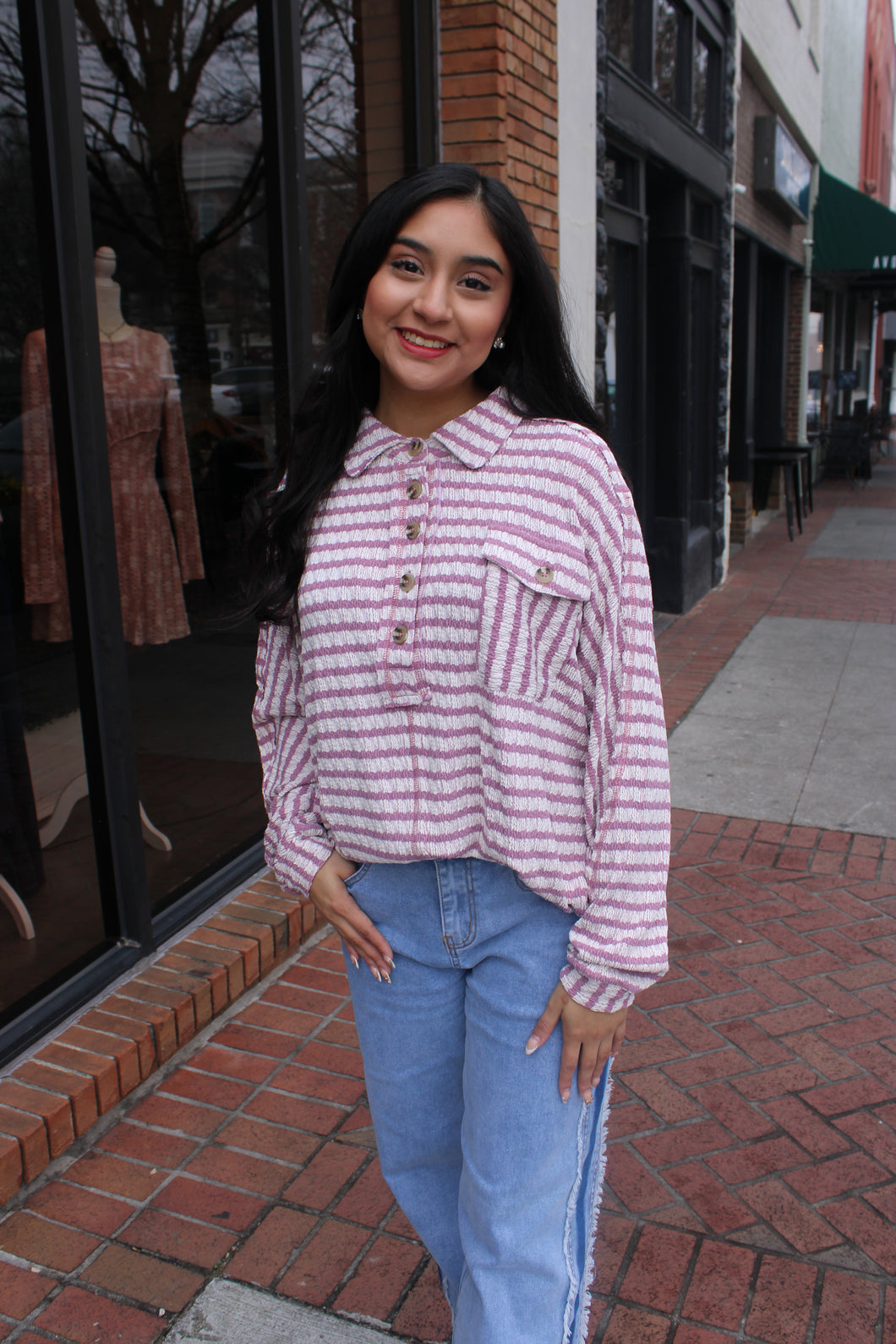 Lavender and Cream Stripe Knit with Button Top