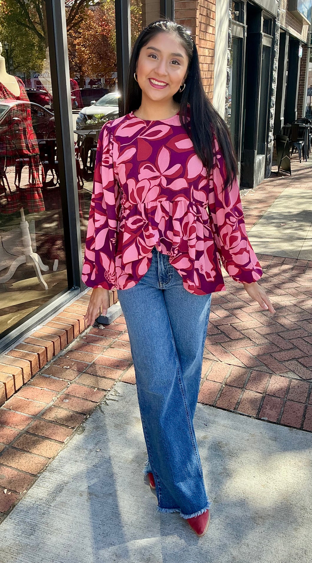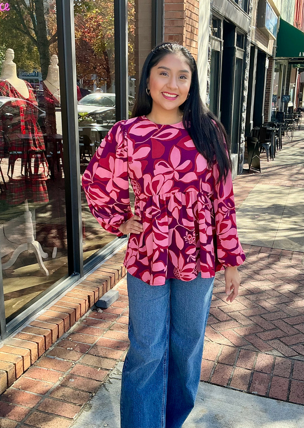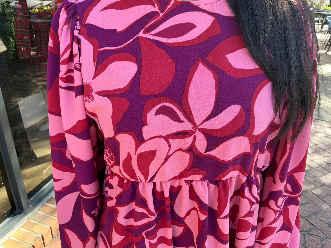 Burgundy and Red Multi Print Long Sleeve Top